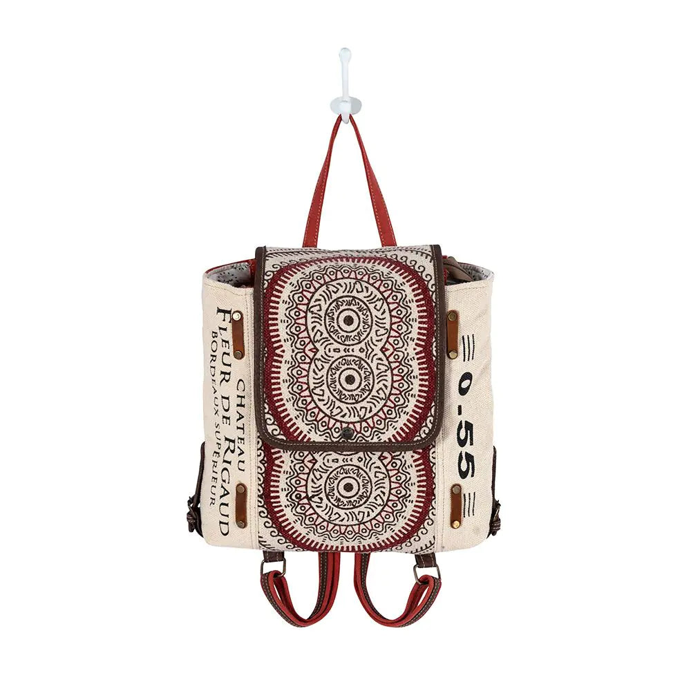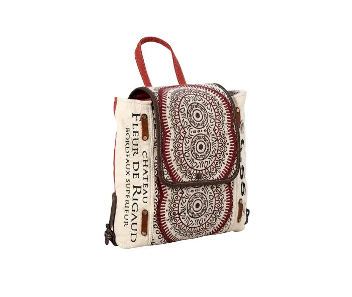 Effortlessly blend style and functionality with the Fleur de Rigaud Backpack. Its unique woven canvas design and chic French print make for a worldly appeal. The trimmed top flap and comfortable carrying straps add elegance, while the back pocket, magnetic snap flap, and inside pockets offer practicality. Perfect for any occasion.