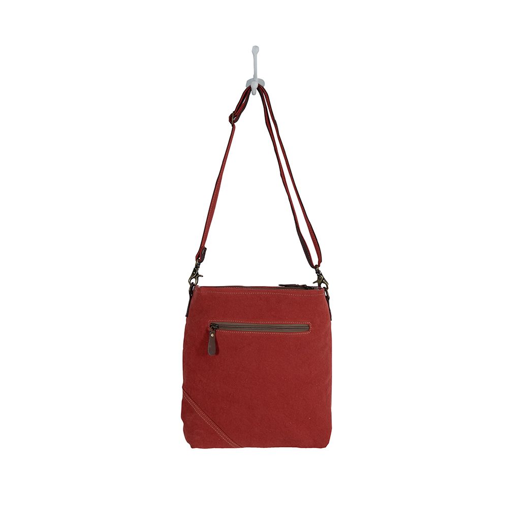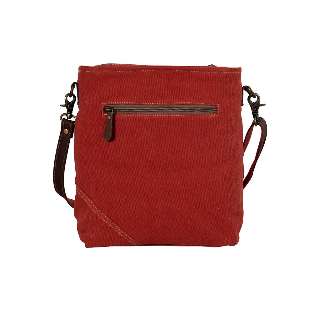 Measures: 13" x 12.5" x 3". Adjustable shoulder strap: 22"
