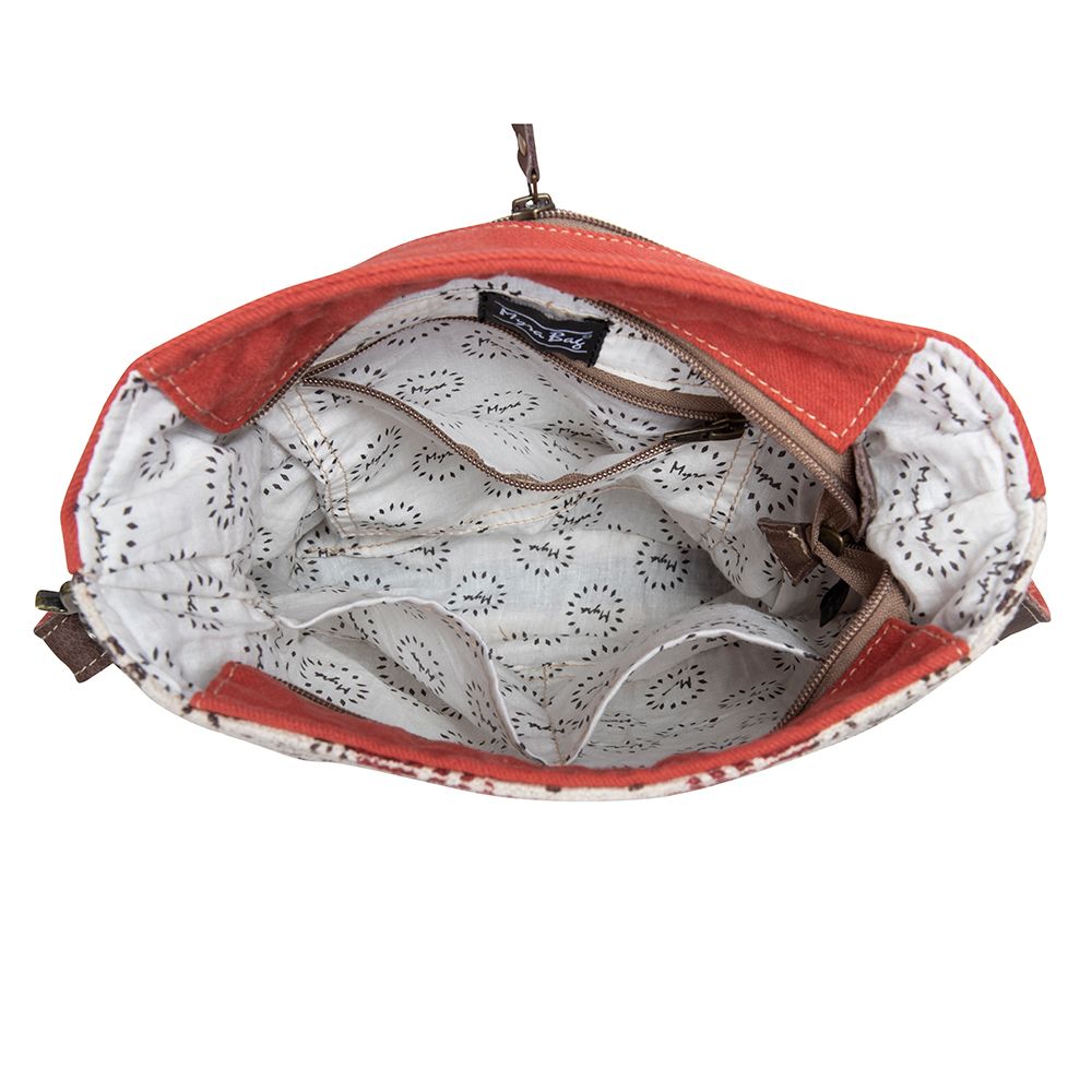Travel in style with the Fleur de Rigaud Shoulder Bag. Its unique and eye-catching pattern, along with French wording overprint, adds a touch of elegance. The zipper top and adjustable, removable leather strap make it functional and versatile. Stay organized with its back and inside zippered pockets and drop pockets. A must-have for any fashion-forward traveler!