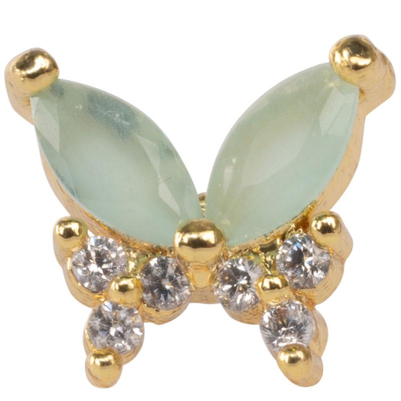 Expertly crafted and adorned with sparkling gemstones, our Gypsy Moon gold color butterfly studs add a touch of gypsy moon magic to any outfit. Perfectly sized for everyday wear, these beautifully designed earrings offer a stunning amount of sparkle in a small package. Elevate your style with these elegant and eye-catching studs.