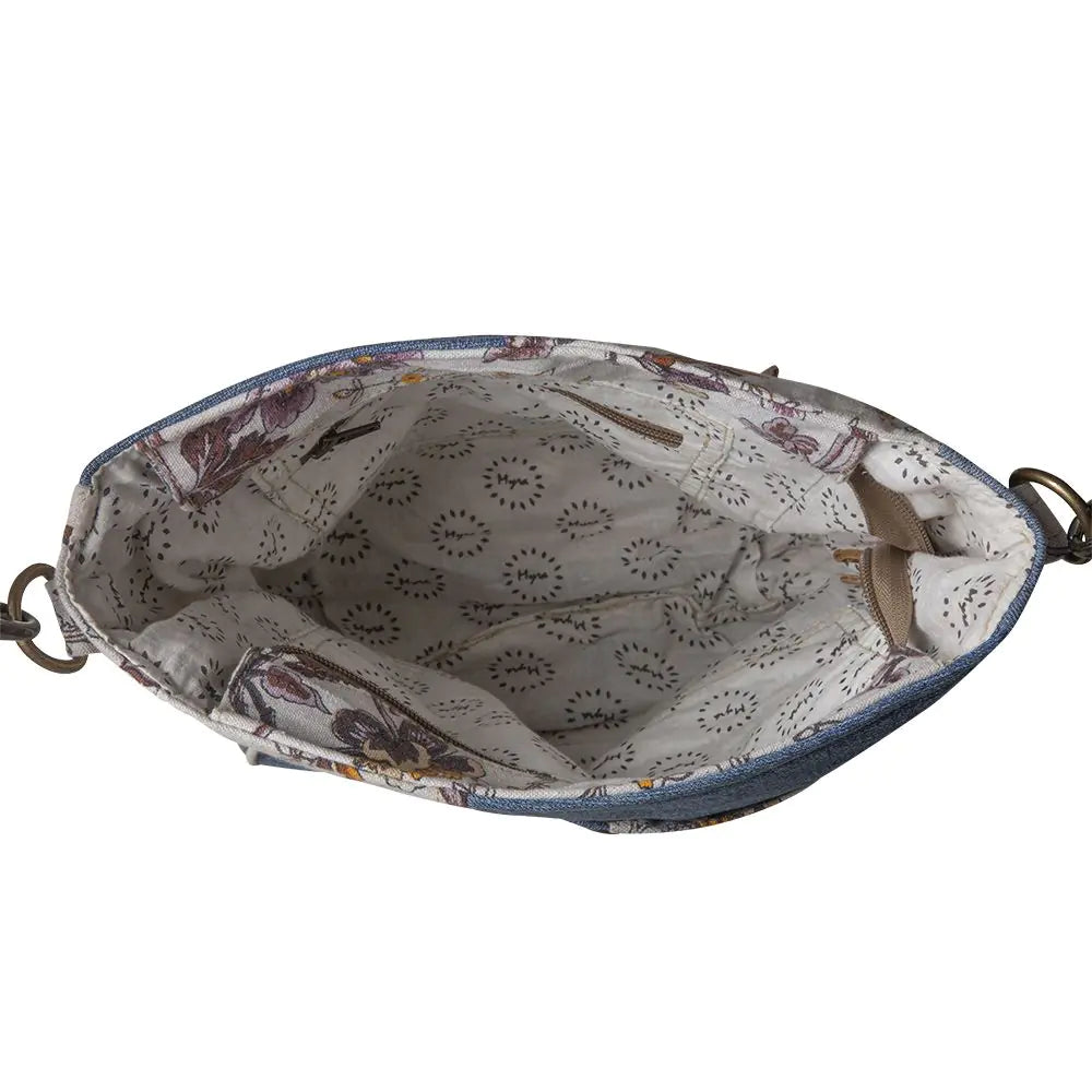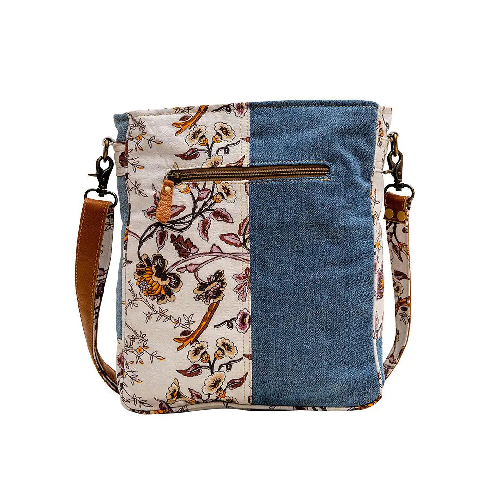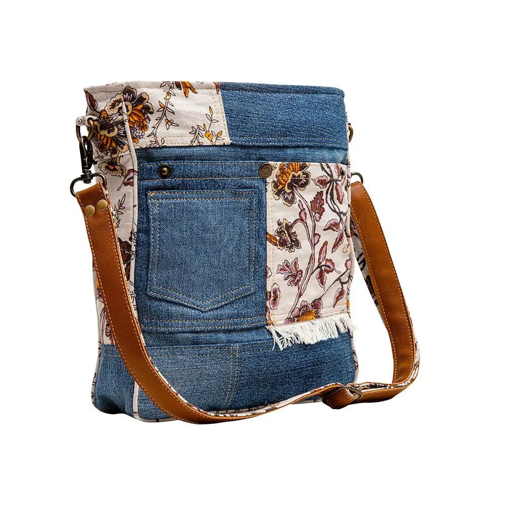 Introducing the Rednoize Shoulder Bag, a masterpiece crafted with patchwork denim, stamped canvas adorned with vibrant flowers, luxurious leather, and sleek metal accents. Convenience meets style with a front snap pocket, zippered back pocket, top zipper closure, and multiple interior pockets. This adjustable strap bag is a must-have for the fashion-forward individual.