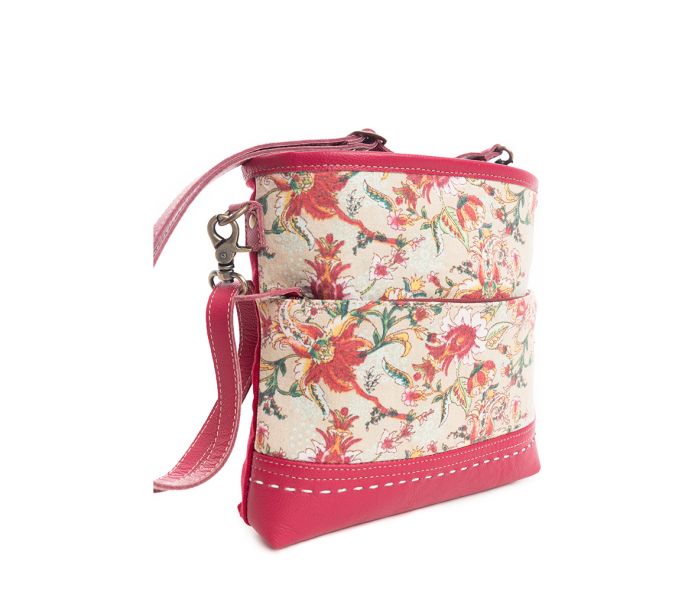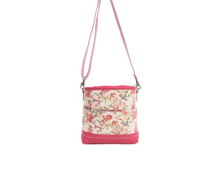 Introducing the Rose Winds Crossbody Bag - a charming ode to the beauty of nature. With a delightful pattern of lush rose blossoms in warm shades, this bag is a treat for the eyes. Enjoy convenience with a front slip pocket and a zippered back pocket, while the coordinated woven canvas adds a touch of sophistication. Finished with a detachable and adjustable shoulder strap for comfort and style.