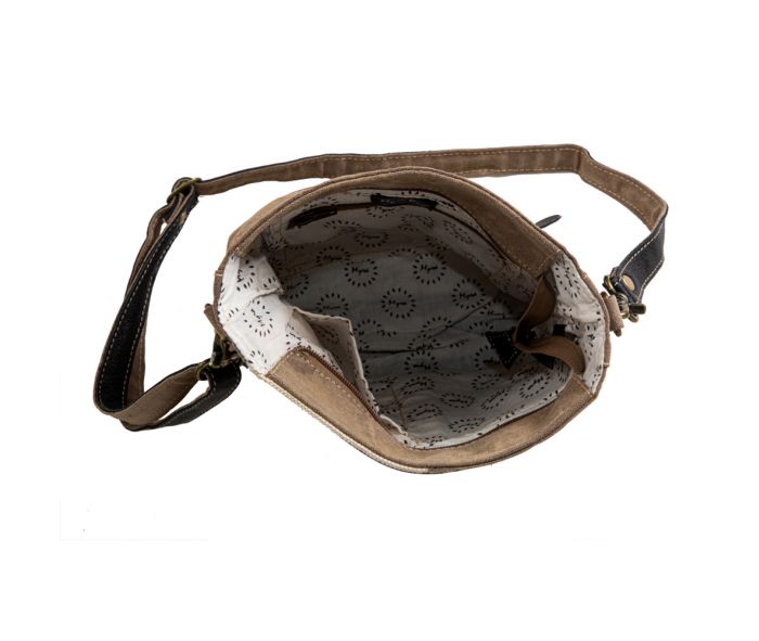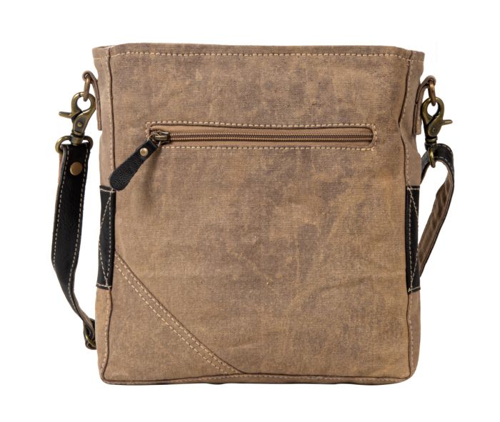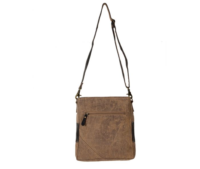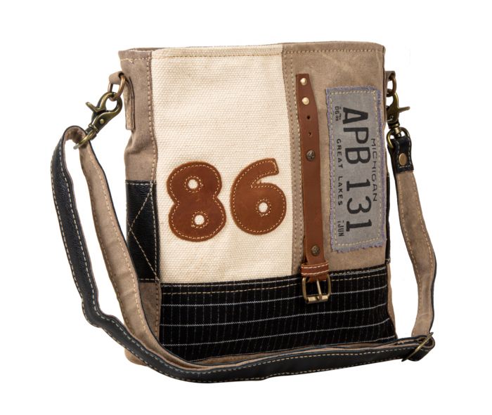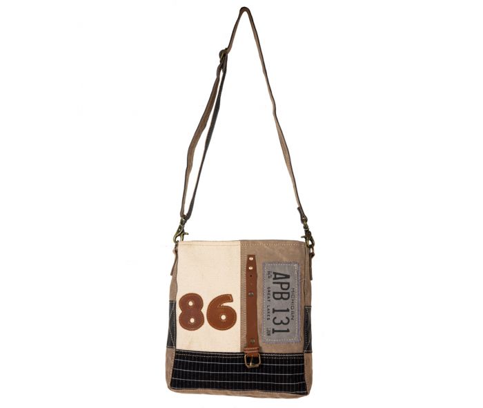 Hit the open road with this stylish Route 86 Shoulder Bag! Featuring vintage-inspired design elements like sewn numbers, a license plate patch, and leather accents, it's the perfect way to accessorize your look with a fun, light-hearted feel. Throw your must-haves in the zipper-close top, stash extra goodies in the canvas back pocket, and go hands-free with the adjustable, removable strap. Ride on!