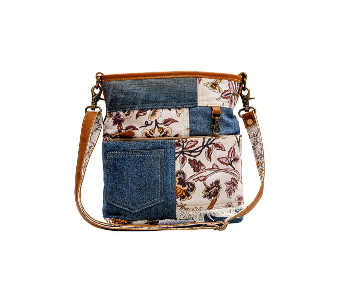The Traverse Shoulder Bag is an ideal accessory for any occasion. Crafted from recycled denim and paired with beautiful floral fabric, it can be worn as a shoulder bag or crossbody for maximum versatility. It features a top zipper closure for secure storage, an internal zippered pocket, and two drop pockets for easy organization, as well as an exterior zipper pocket in the front and a zippered pocket in the back.