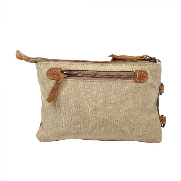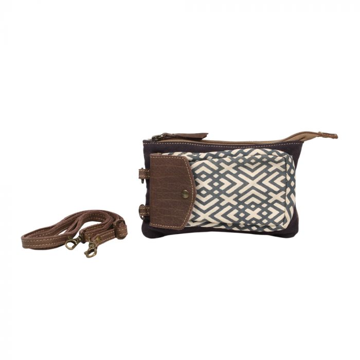 Measures: 5.5" x 8" Adjustable strap can be worn crossbody or shoulder.