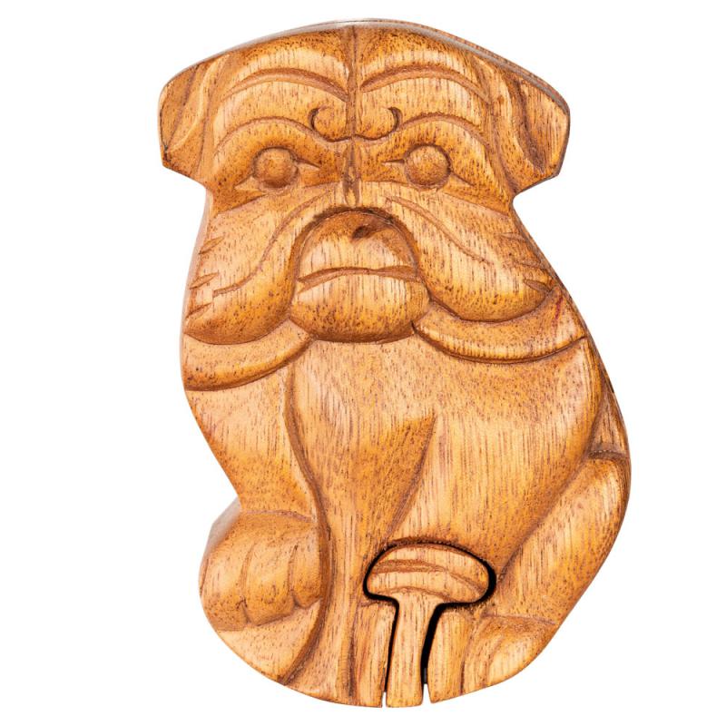 Explore the fun side of problem-solving with our expert-crafted Dog Puzzle Box. Made of premium wood and intricately carved in Indonesia, this puzzle box challenges you to solve the puzzle to open it.