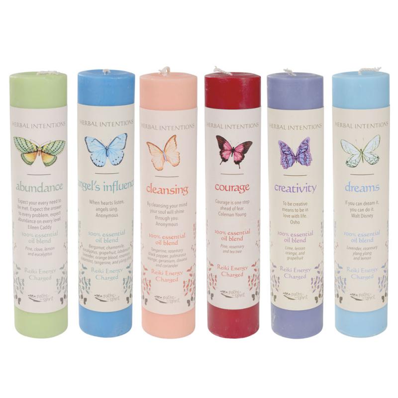 All of our Herbal Intention Candles are made with 100% essential oils and reiki energy charged. Each candle has an inspirational saying that marries the intention.