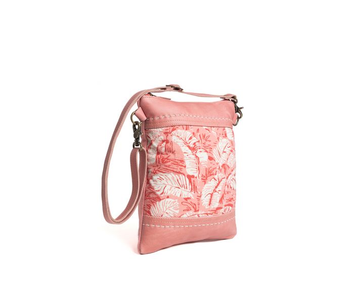 Introducing the Isadora Crossbody Bag. Made with expertly stitched sunrise pink leather, this bag features a serene foliage design and a convenient back pocket. The detachable, adjustable shoulder strap adds versatility. The inside and back zippered pockets complete your look and help you stay organized.