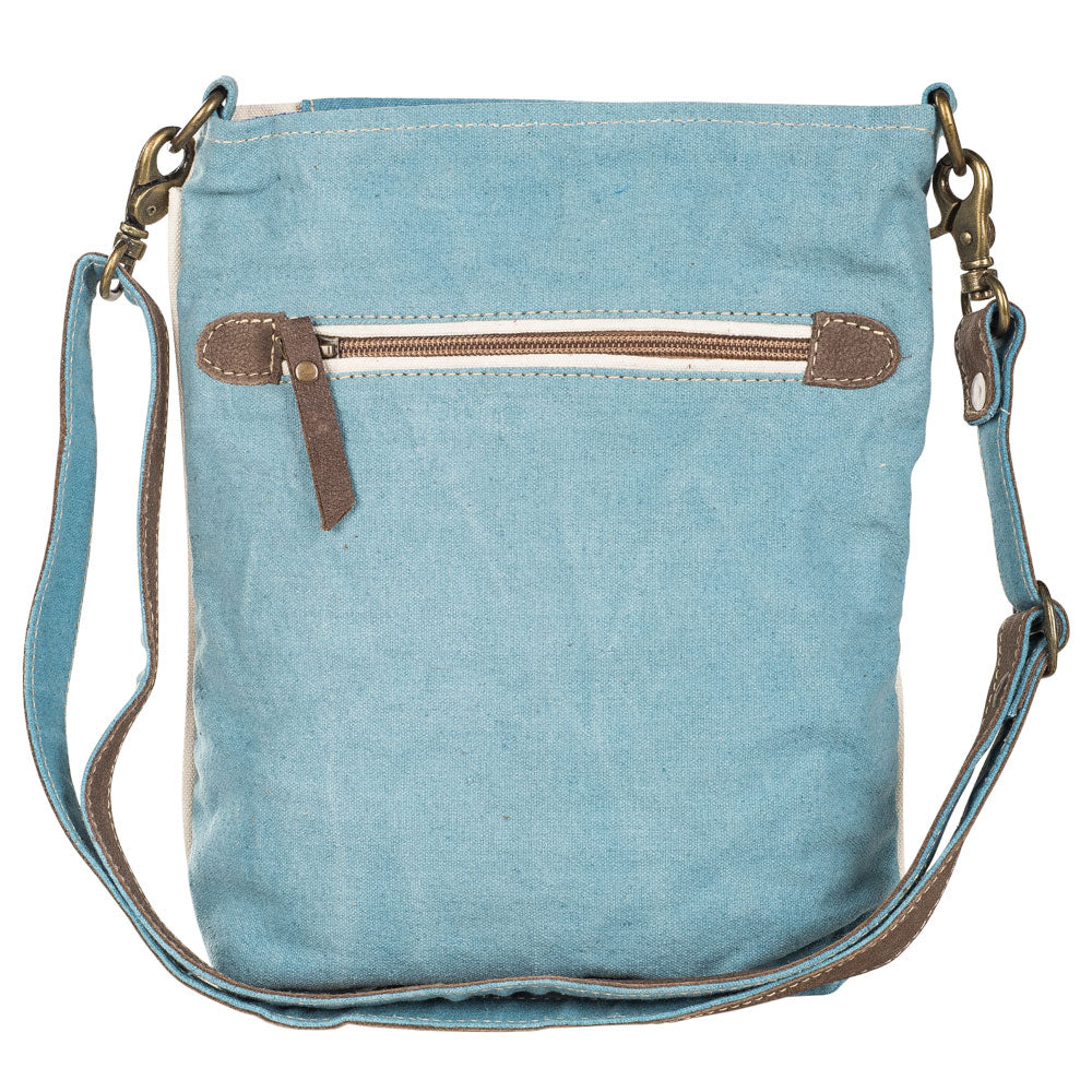 This Just Keep on Rolling Bag is the perfect companion for your next adventure. Crafted from beautiful blue and white canvas, this bag contains a zippered back pocket, top pocket, and an inside zippered pocket, giving you plenty of space to bring along your essentials. Ready to explore the world? Just keep on rolling with this stylish bag!