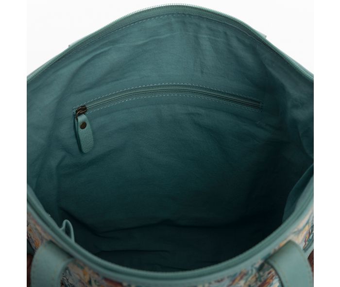 Elevate your style with the Marlonna Tote Bag. The exquisite teal leather, expertly stitched with a beautiful floral pattern, makes a bold fashion statement. Its spacious interior and zipper closure keep your essentials secure, while the matching leather straps and detachable shoulder strap make it versatile for any occasion. Embrace fashion and functionality with this must-have tote.
