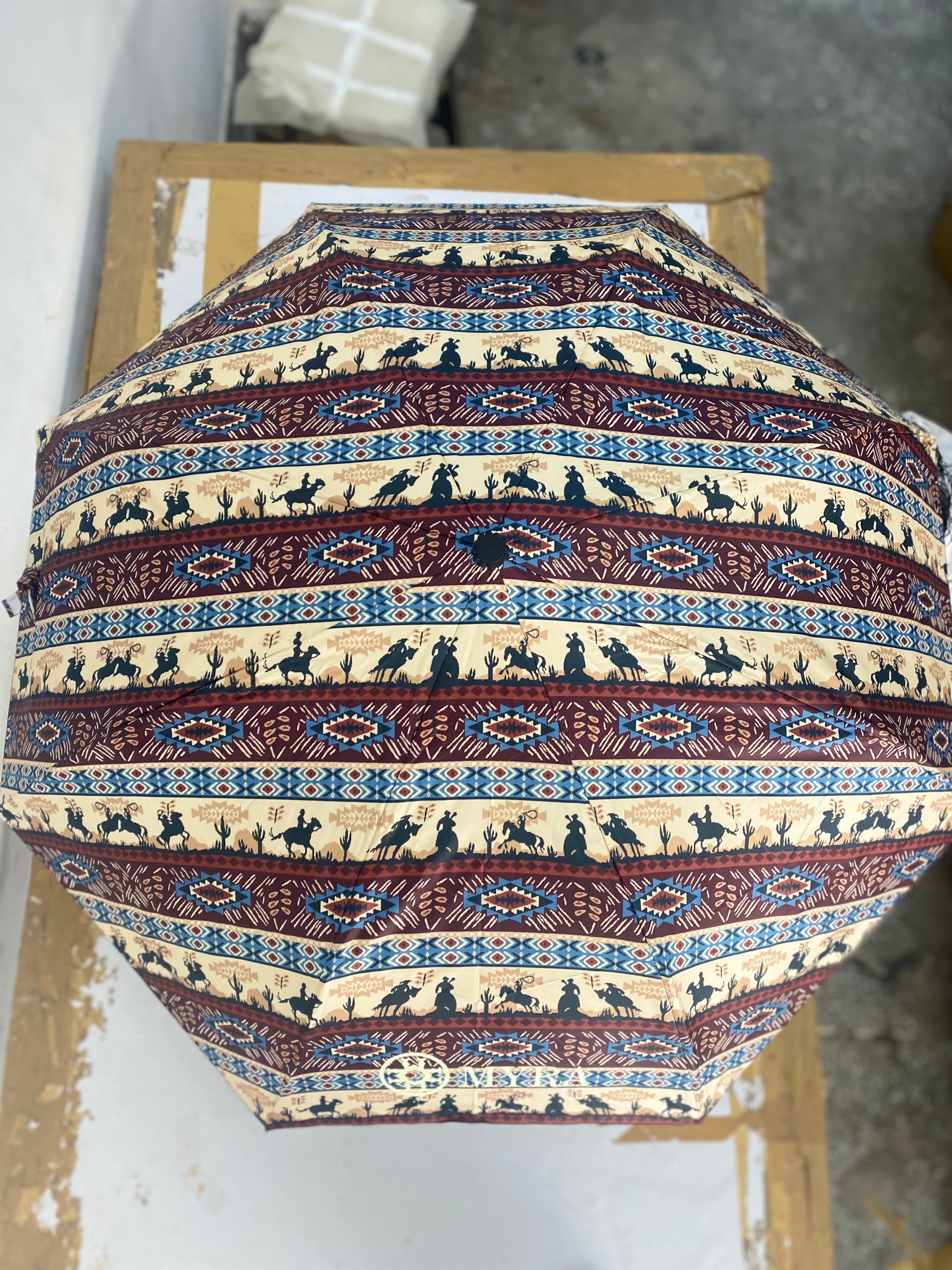 Stay protected from the harsh elements with the Prairie Riders Umbrella. Its beautiful color pattern featuring cowboys will have you feeling like a true pioneer. This umbrella also boasts an automatic open feature, making it easy to use and convenient for any adventure.