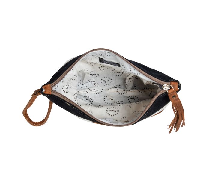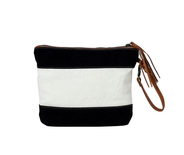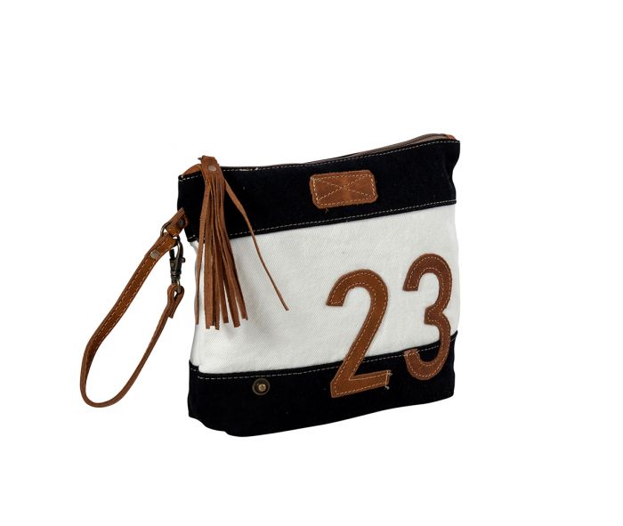 Introducing the Skidoo Pouch from our 23 Skidoo collection. With its richly textured design and unique sewn numbers, this pouch adds a touch of style to your on-the-go lifestyle. The perfect size for any activity, it features a zipper-close top, canvas back, and a brown wristlet carrying strap for convenience.