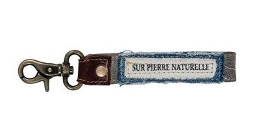 Jazz up your keychain with the Sur Pierre Key Fob! The layered texture and leather trim add interest and style, while the antiqued brass clasp keeps your keys secure. Say goodbye to boring keychains and hello to quirk and fun.