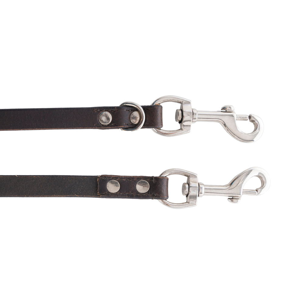 Enhance your dog walking experience with the luxurious Viaje Dog Leash in Ebony. Made from high-quality ebony black leather, this leash not only adds style but also offers added durability with its ring accent and industrial grommets for strength. Upgrade your walks with this elegant and sturdy leash.