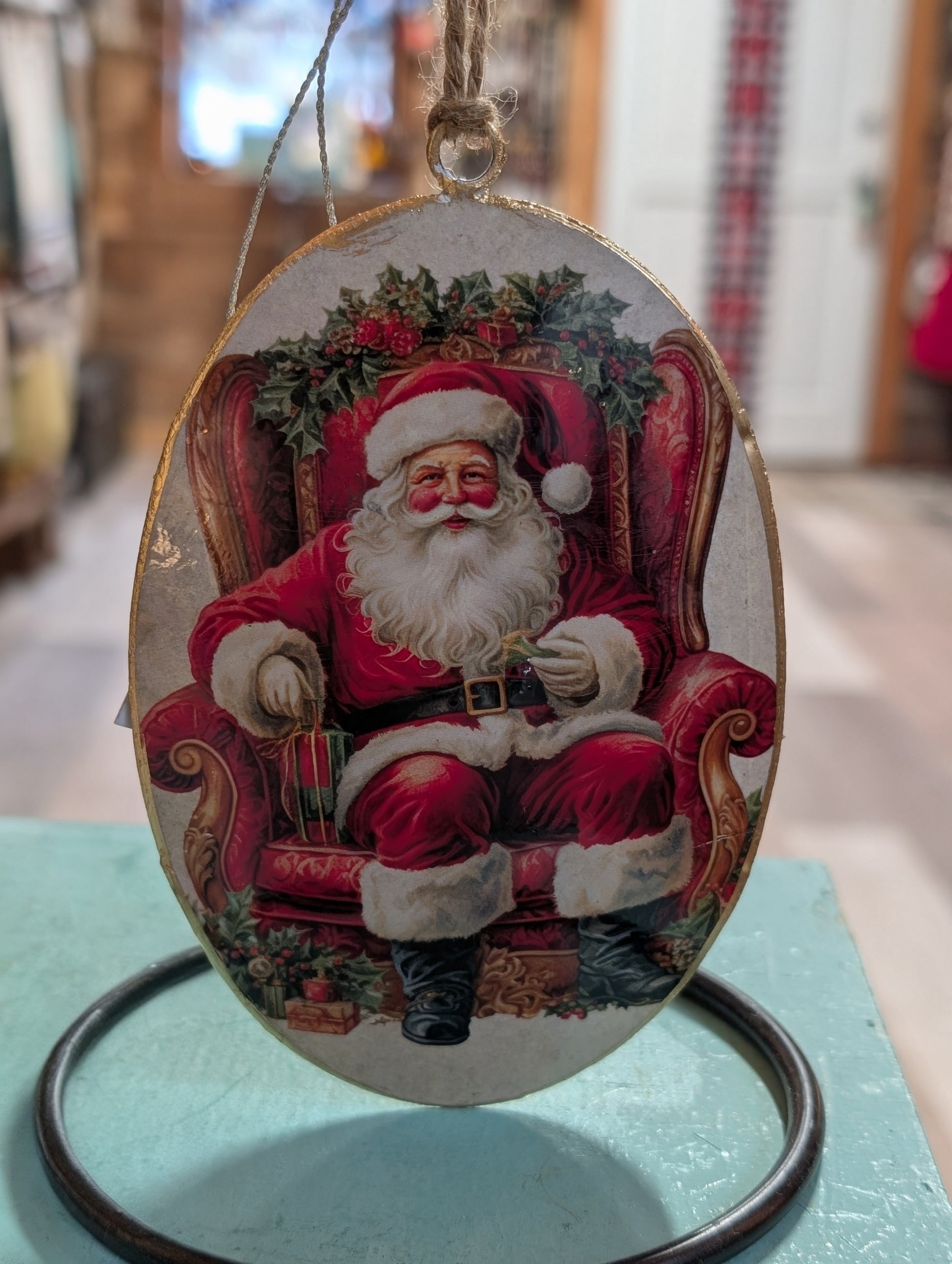 Elevate your holiday décor with these exquisite vintage-inspired ornaments, featuring timeless designs of Santa and a Christmas Tree adorned with delicate holly patterns on the reverse. Each piece is finished with lustrous gold leaf detailing along the edges, creating an air of refined elegance. Perfect for collectors and those seeking to add nostalgic charm with a touch of sophistication to their seasonal display.