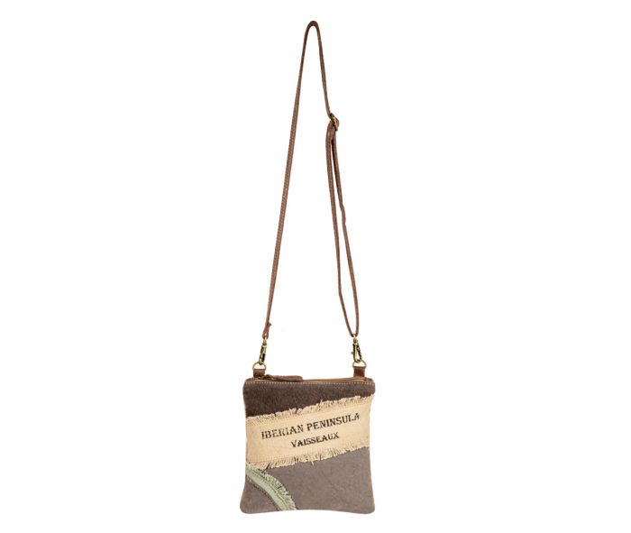 This World Travels Patchwork Crossbody Bag is a perfect travel companion. With carefully crafted touches of Europe, this vintage-inspired design includes frayed edge treatments and destination overprinting. It has a secure zipper-close top and a durable, adjustable, and removable shoulder strap.